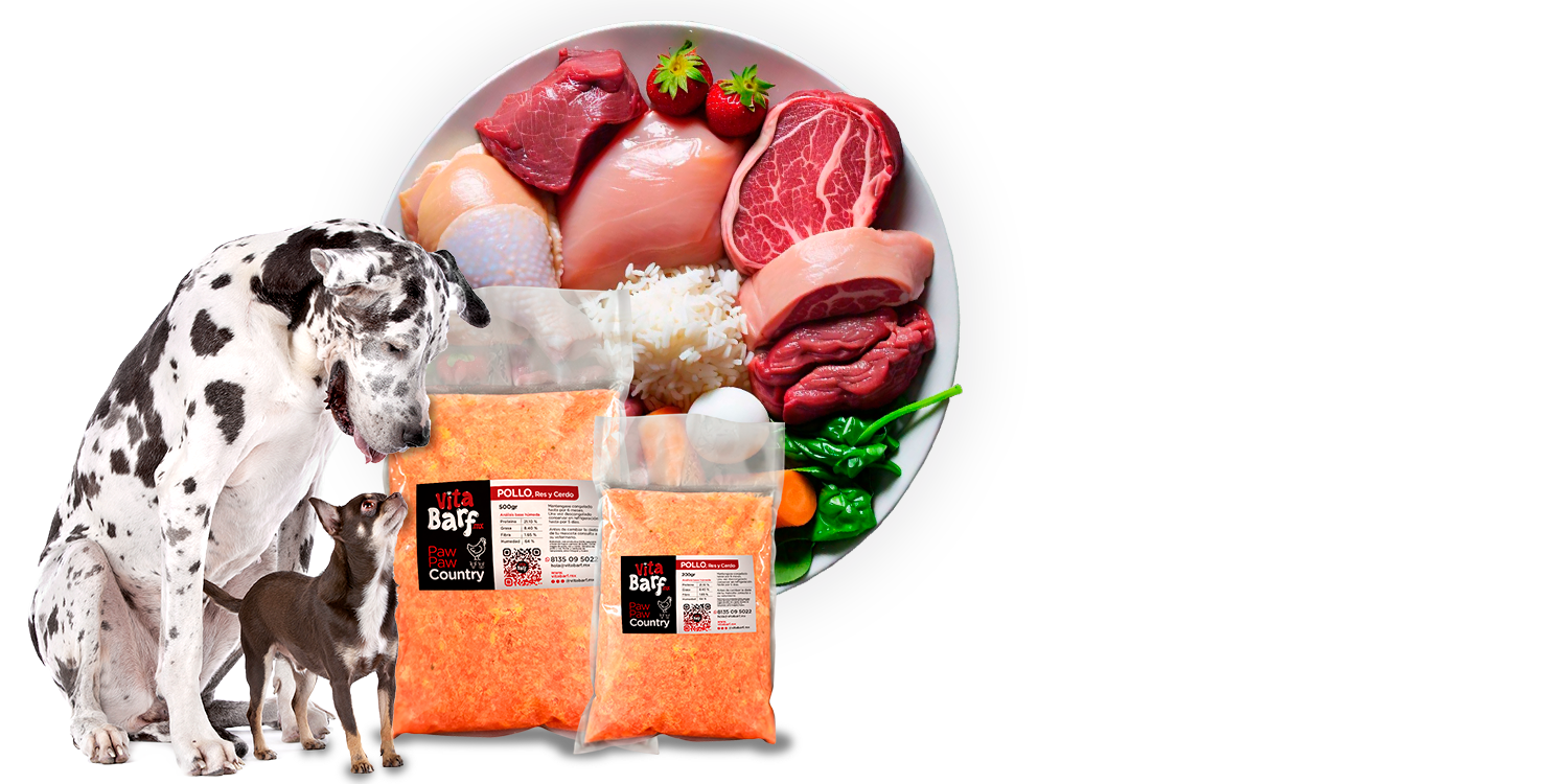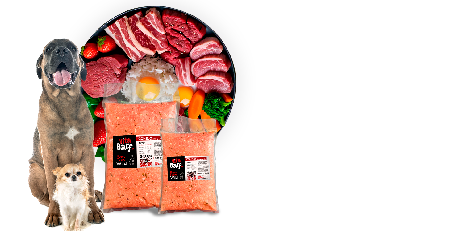 Alimento BARF hecho de Conejo, Res y Cerdo, para perros alérgicos al pollo o con sobrepeso.