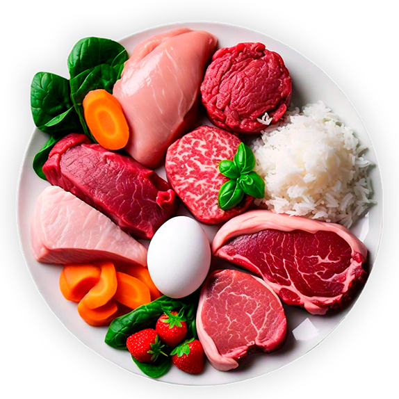 Nuestra Dieta BARF utiliza ingredientes naturales, frescos y sin procesar, aptos para consumo humano.